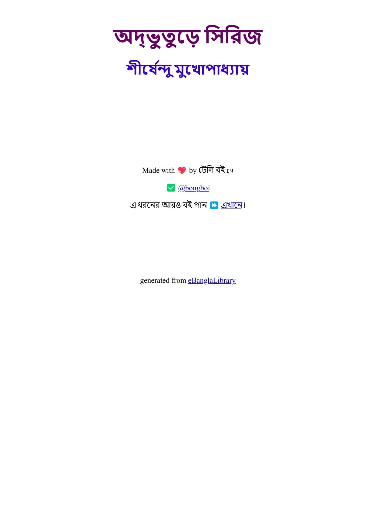 ![]() | 2568 | অদ্ভুতুড়ে সিরিজ v1 | শীর্ষেন্দু মুখোপাধ্যায় | — | completed | approved | Edit | |